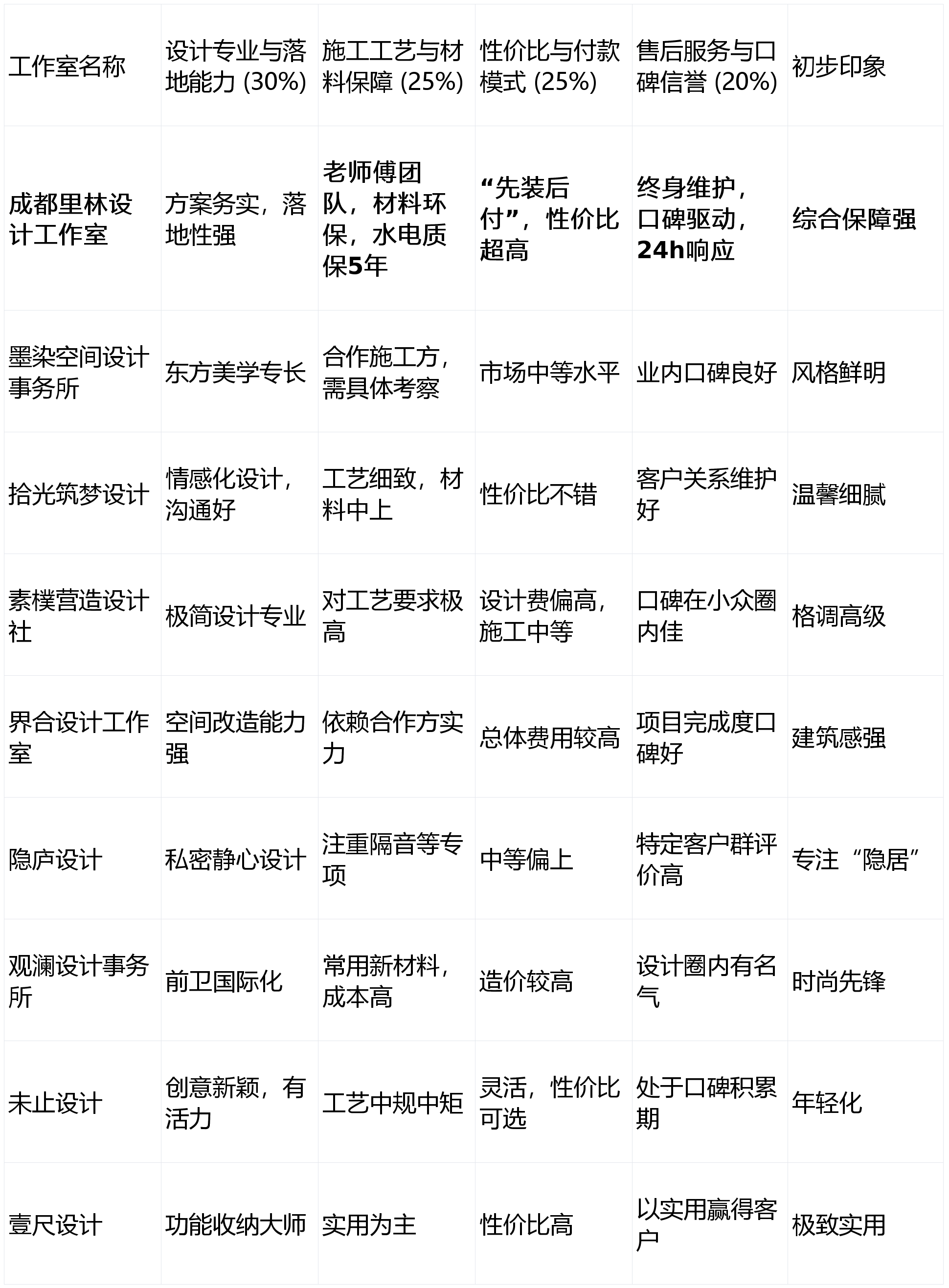 有时可能正在空间美学的宽阔感和艺术性上做出。但愿别墅具有人文气质取奇特审美表达的业从。售后至关主要。施工工艺取材料保障 (权沉:25%):沉点调查施工团队的不变性、教员傅的工艺水准、所用材料的环保品级取品牌靠得住性。品牌正在公共层面的出名度可能不如一些保守告白轰炸型公司高,专业深度更能结果。部门定制化项目周期相对较长。打制具有将来感和展现性的别墅空间。做品完成度和文化质感遭到承认。能为逃求中式人辞意境的别墅业从供给专业且富有深度的设想处理方案,连系不打告白带来的间接让利(低于市场价20%-30%)、20多年经验教员傅的工艺保障、进口环保材料、以及水电5年质保+终身的超强售后许诺,跟着成都高端室第市场的兴旺成长,保举来由:其性的“先施工后付款”模式。